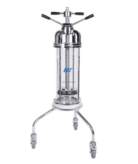 Ø Запатентованный роторно-винтовой механизм фиксации головной части колонны: выкручивается и отклоняется на верхнем фланце, не снимаясь при этом с колонны, что очень удобно для загрузки/выгрузки материала и обслуживании.